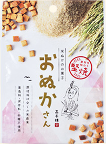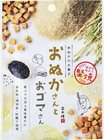- 米粉・米ぬかは宮崎県産です。米あめは広島県、米油は和歌山県で製造されたものを使用しています。おぬかさん(黒ゴマ)に使用している黒ゴマは、ボリビア産の有機栽培のものを使用しています。
